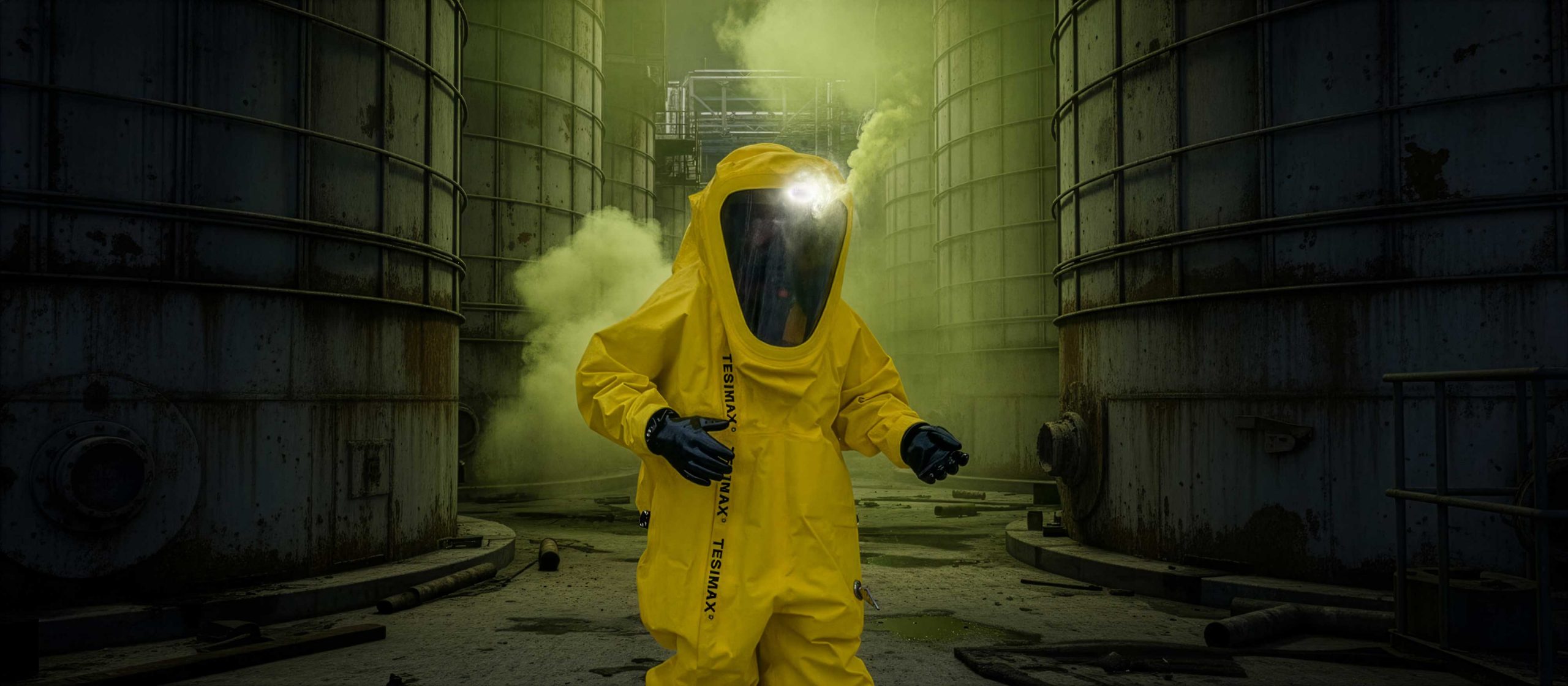 Die CBRN-Schutzanzüge wie der VS 20 SILVERFLASH oder VS 20 SYKAN 4 enthalten schwer entflammbare Para-Aramid-Faser Träger-Gewebe