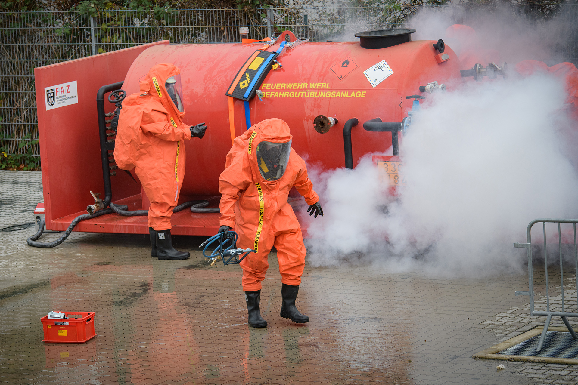 Der jeweilige Anlagenbetreiber (Veranstalter sowie die Feuerwehr-Ausbilder vor Ort) sind ausschließlich verantwortlich für das Sicherheitskonzept, die Sicherheitseinweisungen, die Trainingsvorbesprechung, das Anziehen der Schutzkleidung, das Training, die Trainingsanweisungen, die Dekontamination und das fachgerechte Ausziehen der Schutzkleidung. Ebenso werden entsprechende Atemschutzgeräte und Masken vom Anlegen-Betreiber zur Verfügung gestellt.