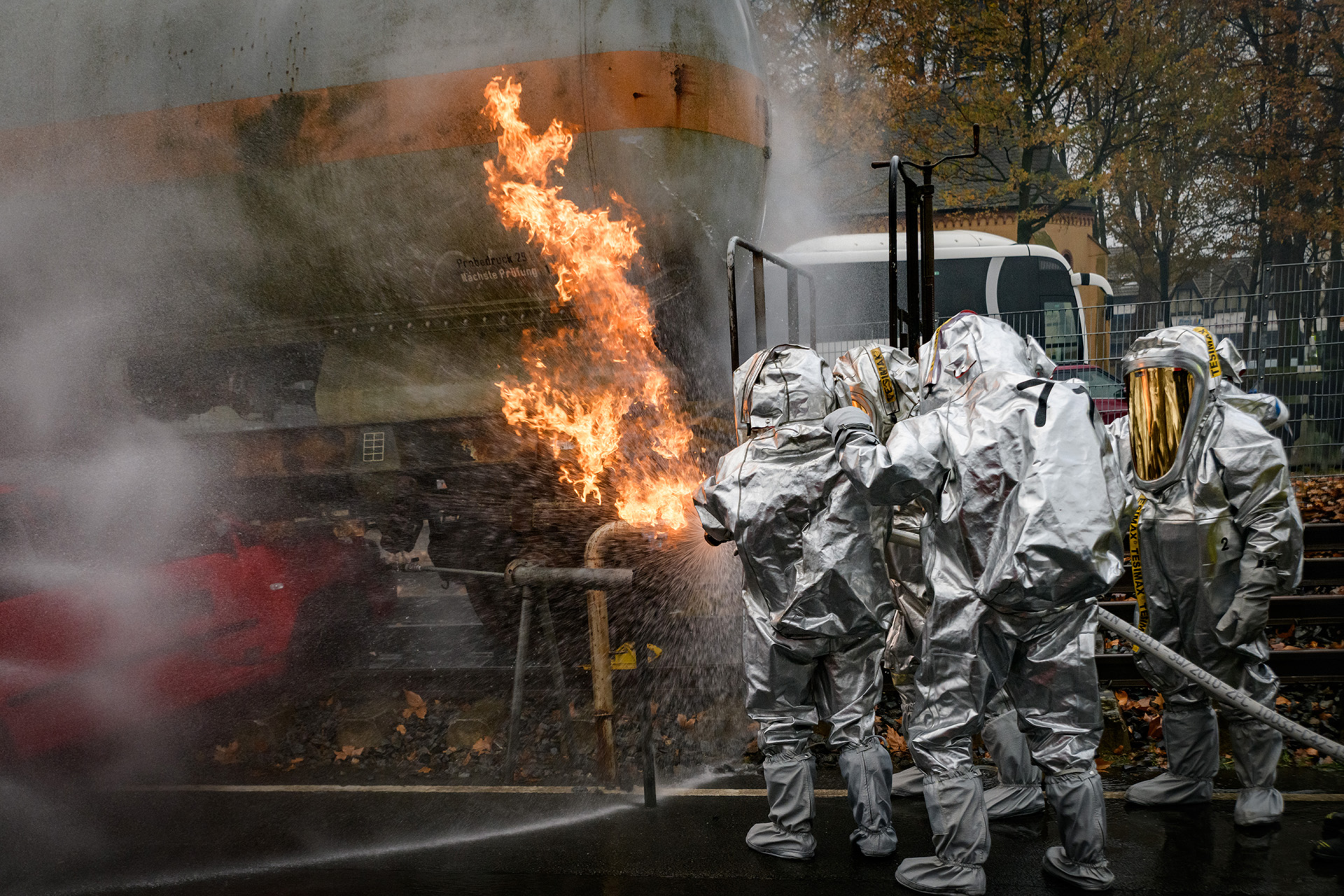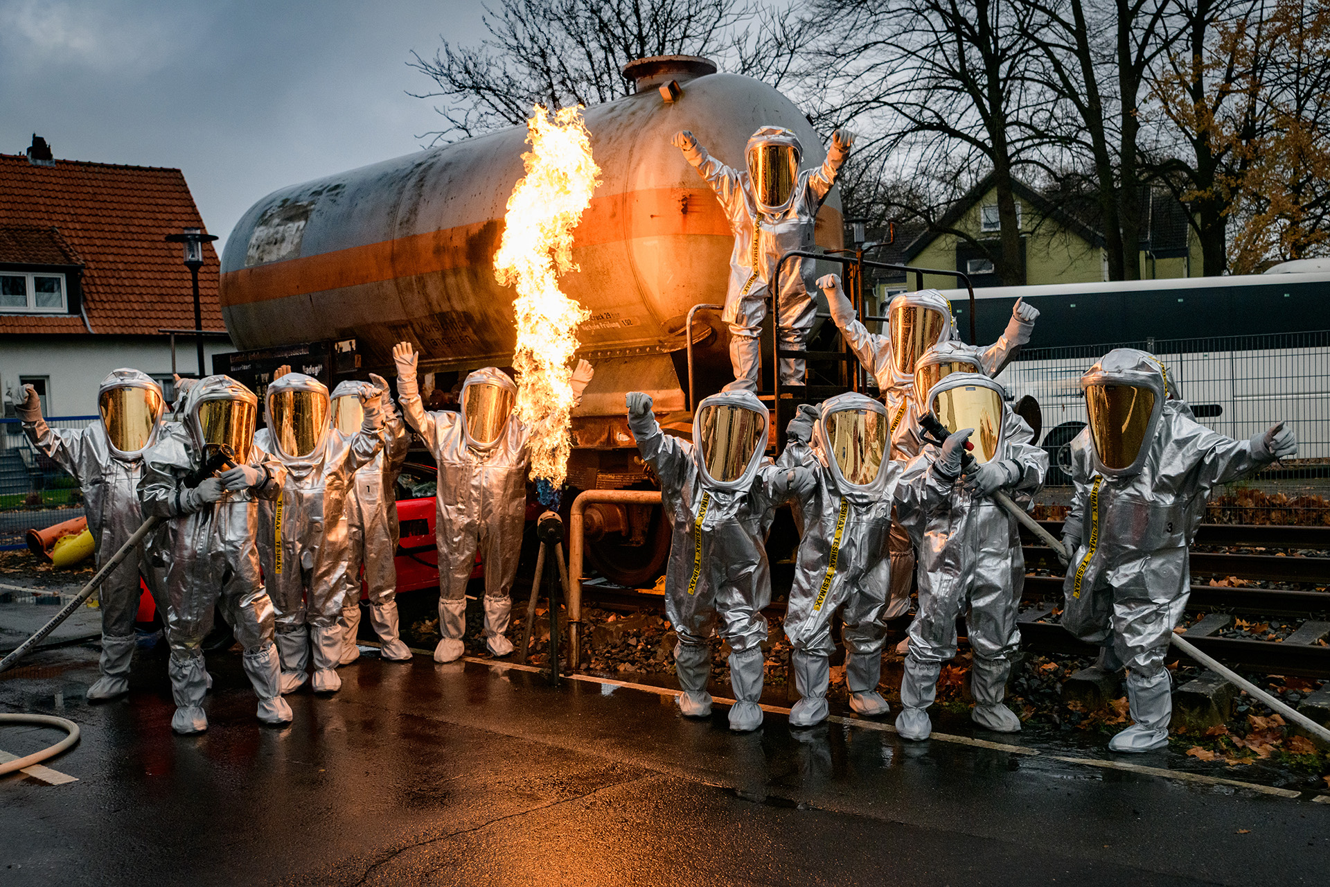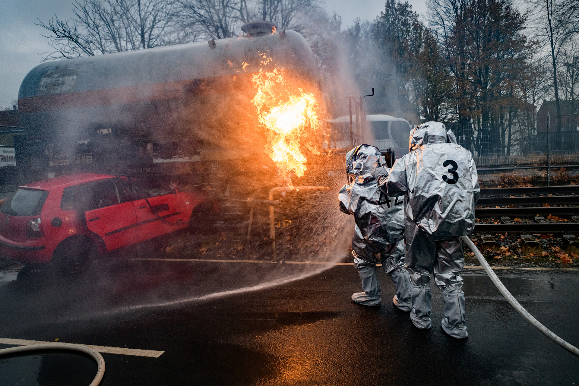 Wir, als Organisator der Veranstaltung, stellen die notwendige Chemikalienschutzanzüge und/oder Feuerwehreinsatzkleidung kostenlos vor Ort zur Verfügung.